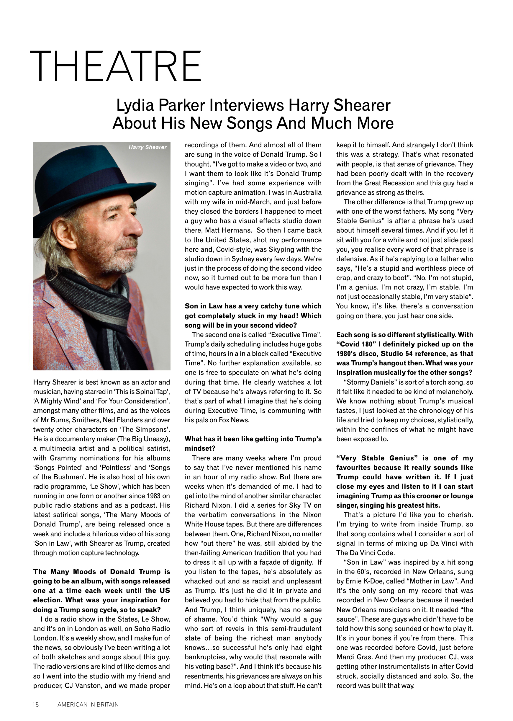 A veteran of satire from his days in films like Best In Show, This Is Spinal Tap, A Mighty Wind, Real Life and more, Harry Shearer has the experience to mine the mindset of the current president for comedy purposes…